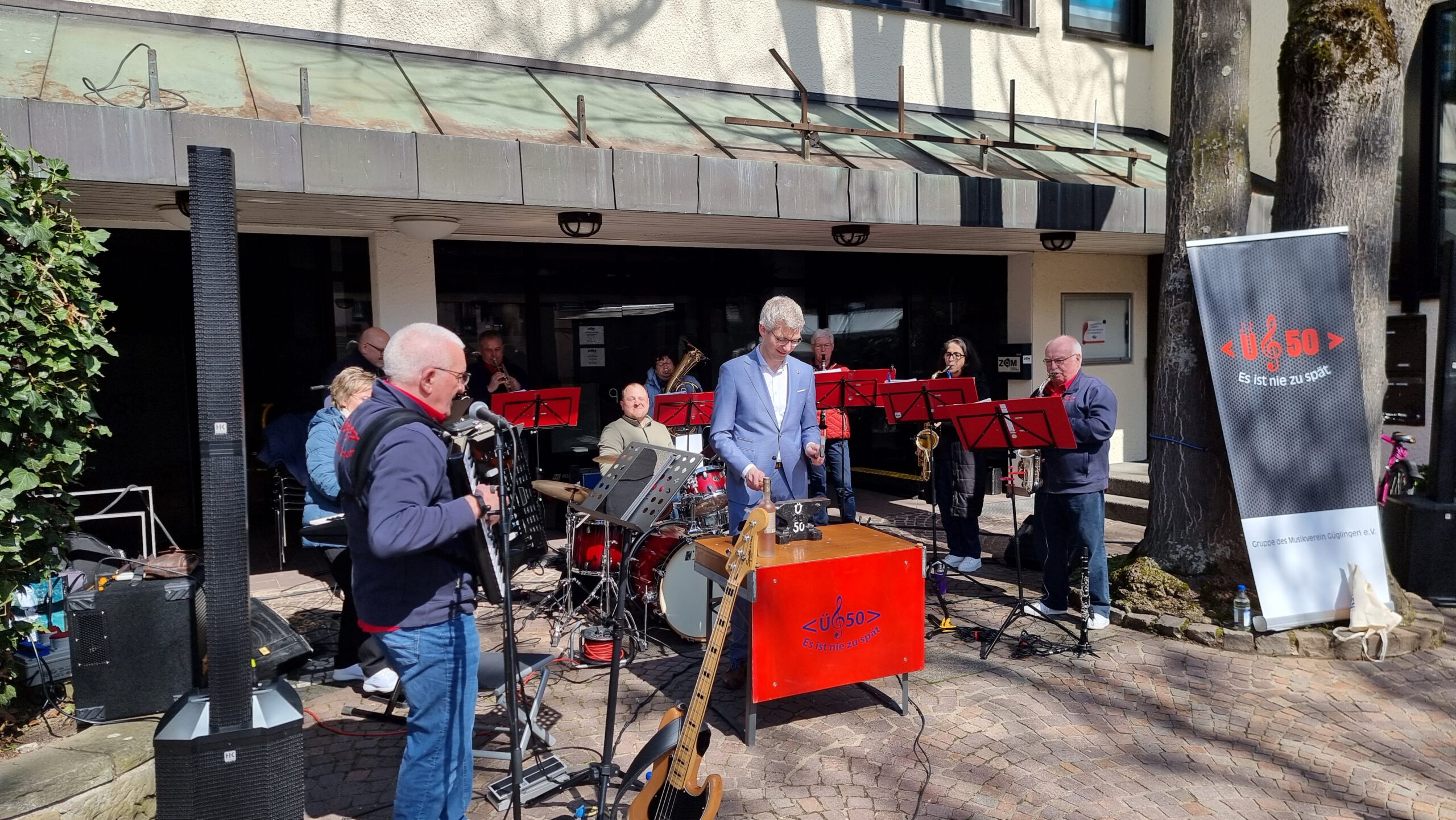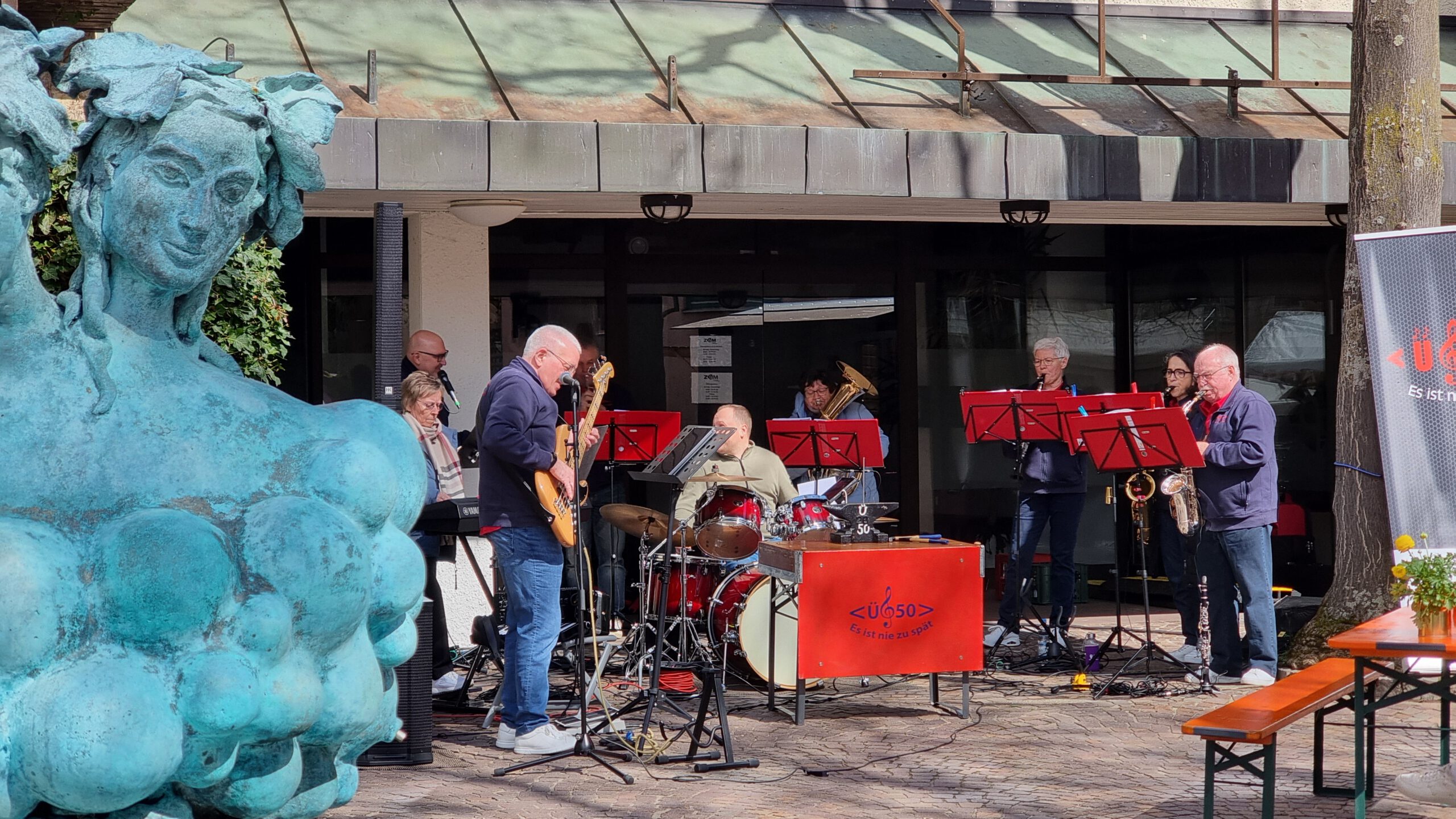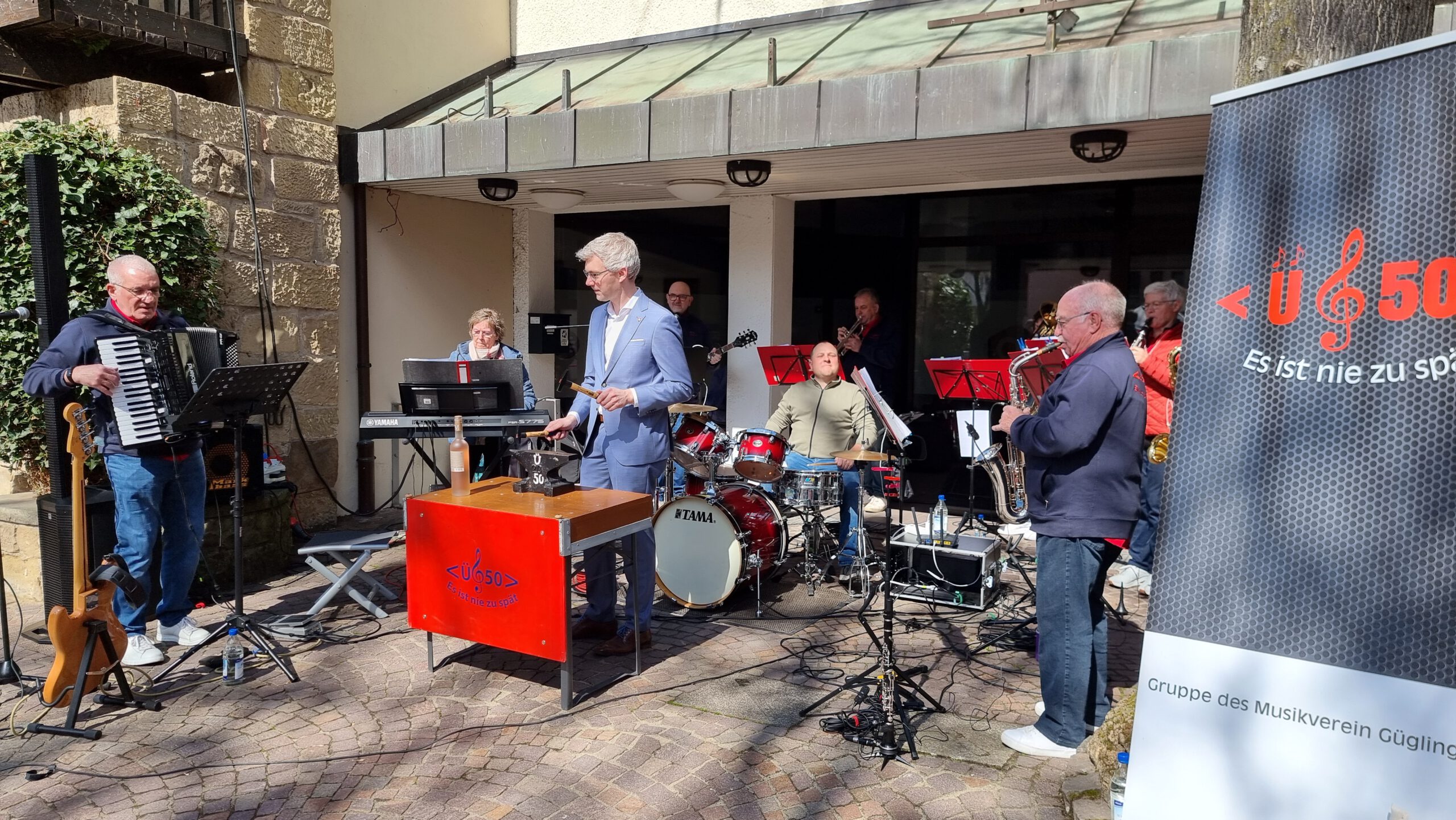 Am vergangenen Sonntag, den 29. März, verwandelte sich die Güglinger Innenstadt trotz kühler Temperaturen in einen lebendigen Marktplatz. Unter die Marktgäste mischten sich immer wieder wärmende Sonnenstrahlen, passend zur stimmungsvollen Untermalung durch die „Ü50-Gruppe“ des Musikvereins Güglingen. Unter der bewährten Leitung von Wolfram Seidl präsentierte das Ensemble ein abwechslungsreiches dreistündiges Programm, das von Klassikern wie „Alte Kameraden“ über den „Böhmischen Traum“ bis hin zu schwungvollen Schlagern wie „Marina“ reichte. Die dichten Zuschauermengen am Marktplatz zeigten sich begeistert von der Spielfreude der erfahrenen Musiker, die sichtlich für gute Laune sorgten.
